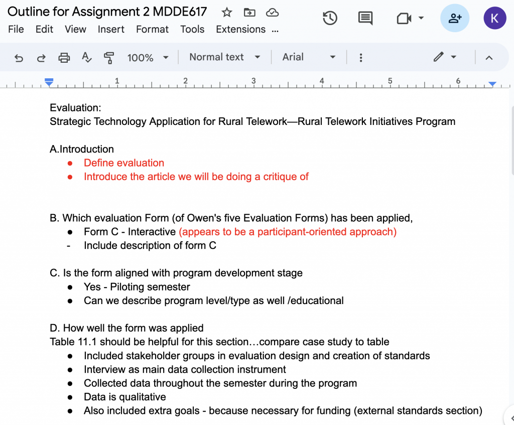 Screenshot of 617 outline in Artifact 2: Rethinking Group Work in Program Evaluation