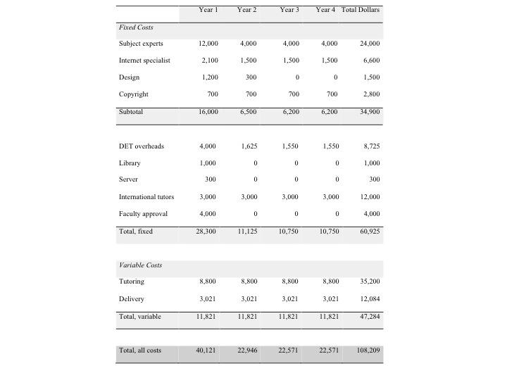 | Description: | Costs of EDST 565f Over Four Years (Bates A. , 2000, p. 143) |