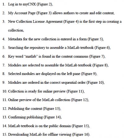 In Artefact 3, I used screen capturing to illustrate a typical workflow and created a collection (i.e. part of a textbook). This collection demonstrated how quickly one could compile a few modules to assemble and publish a textbook in Connexions.
